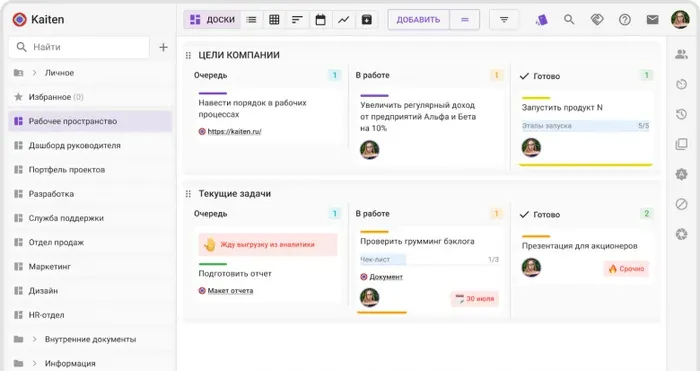 Kaiten — российская система управления задачами для команд, которые работают по гибким методологиям. Её часто используют продуктовые и ИТ-подразделения, где важны прозрачность процесса и контроль движения задач.