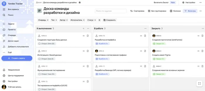 Поддерживаются канбан-доски, бэклог и спринты.