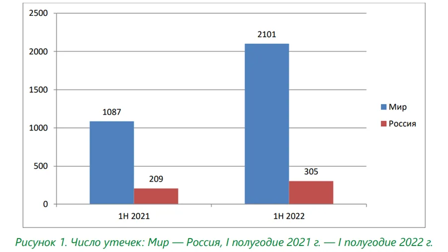 Источник: Отчёт об исследовании утечек информации ограниченного доступа в I половине 2022 года, INFOWATCH
