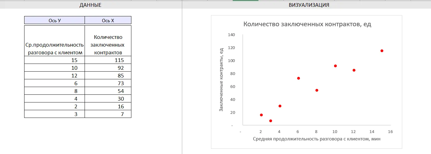 Например, для получения точечной диаграммы заполняем данные для осей Х и У в таблице слева и получаем готовый вариант визуализации, в котором нам остается лишь изменить цветовую гамму для необходимости. Основные базовые настройки визуального отображения уже были сделаны.