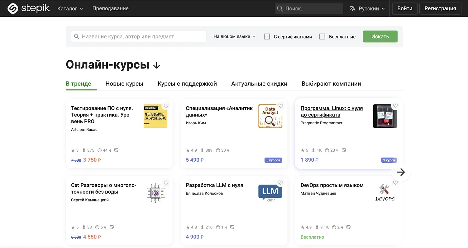 Stepik – российская образовательная LMS-платформа, объединяющая функционал конструктора курсов и маркетплейса учебных материалов. Решение позволяет создавать интерактивные онлайн-программы с автоматизированной проверкой заданий, организовывать вебинары и отслеживать статистику успеваемости.