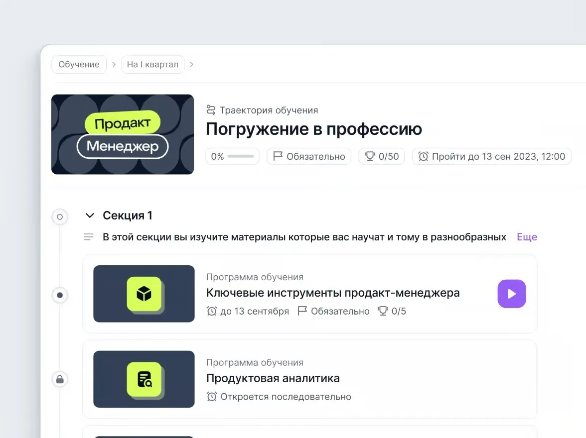 Например, для массового обучения розничного персонала критичны мобильное приложение и микрообучение, а для развития управленческих команд –– интеграция с оценкой 360 и сложные кейсы.
