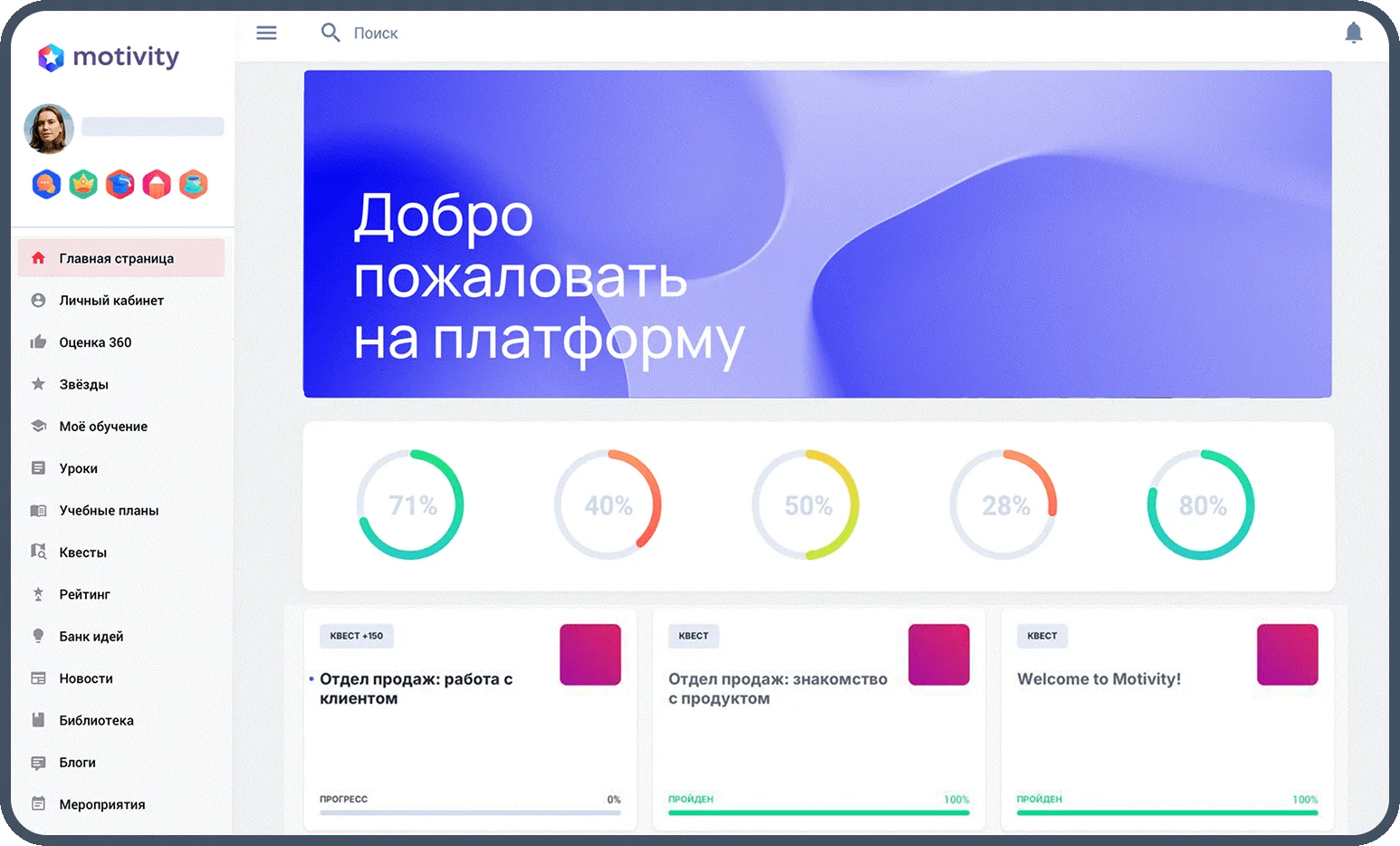 Motivity – российская платформа, формирующая комплексную цифровую экосистему, где в едином пространстве объединены обучение, внутренние коммуникации, мотивационные механики и оценка эффективности сотрудников.