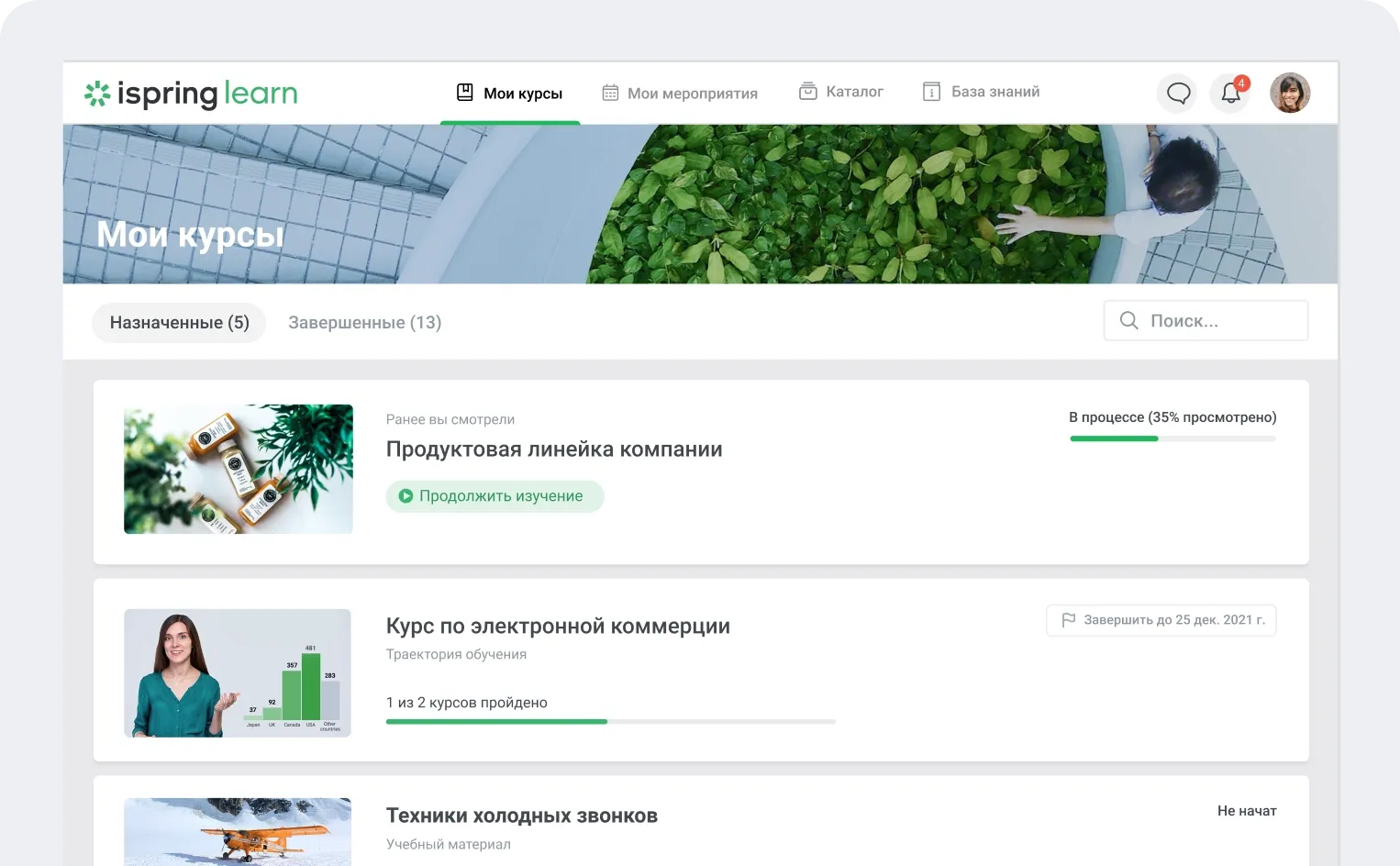 iSpring Learn – облачная LMS-платформа, разработанная для компаний любого масштаба. Основное преимущество – работа в облаке: для старта достаточно зарегистрироваться, и даже не придется привлекать ИТ-специалистов. Платформа также включена в реестр отечественного ПО.