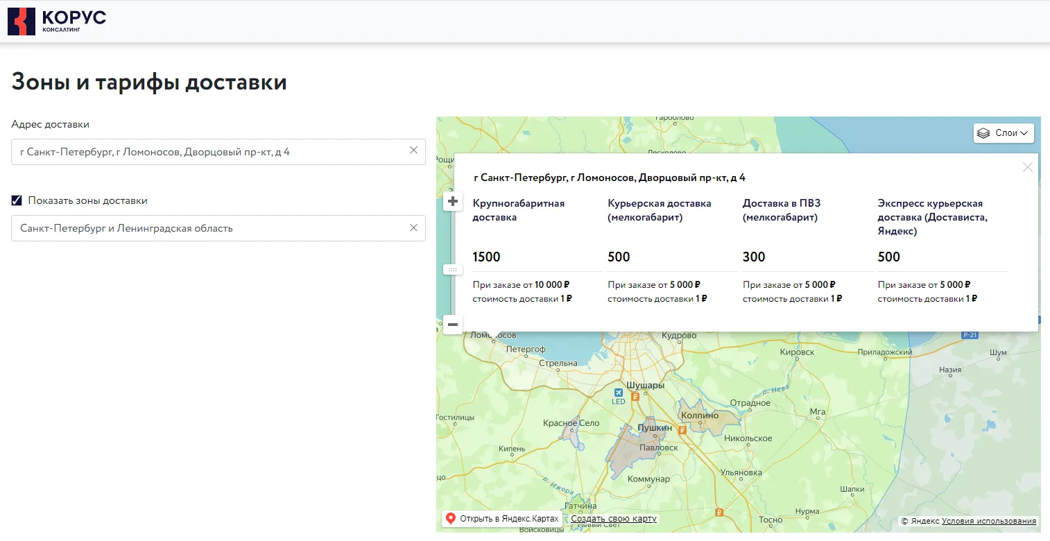После подключения онлайн-магазина, покупатели могут видеть ту же стоимость доставки, что и сотрудники офлайн-магазинов и колл-центра.