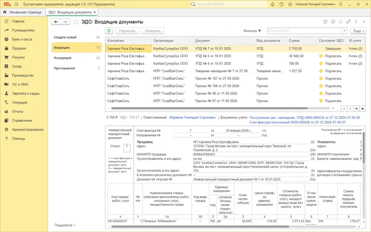 | Внешние документы | Да | Частично | Через интеграцию с ЭДО |
