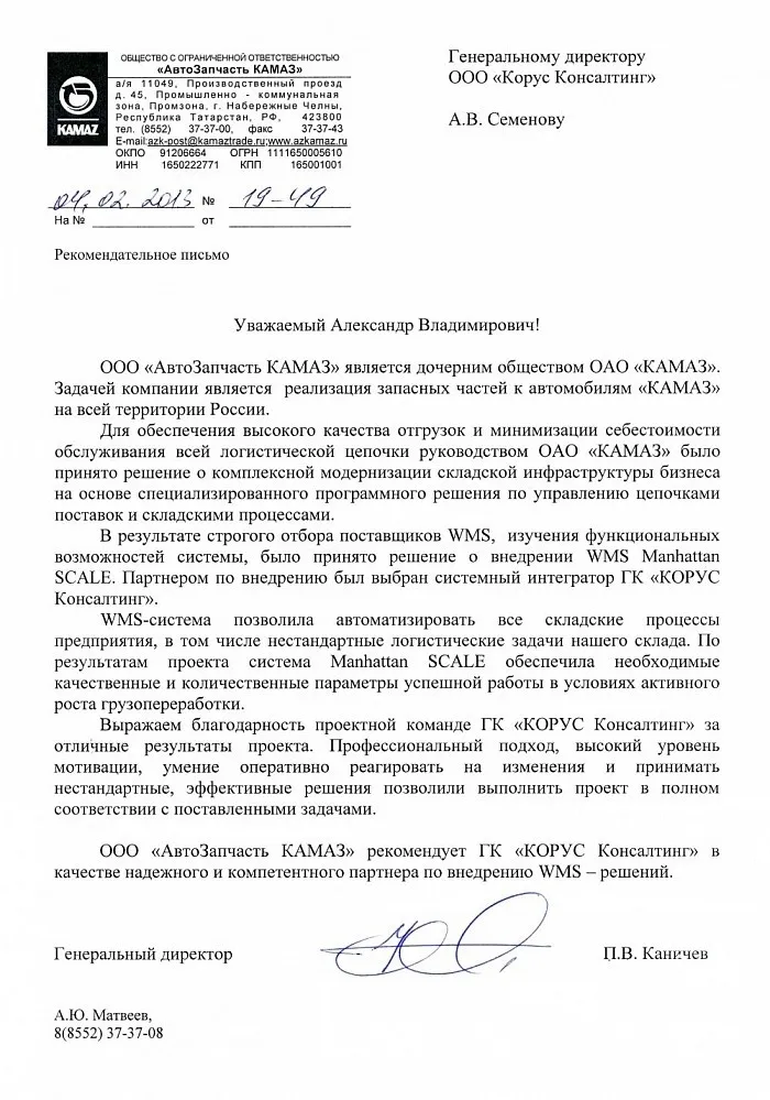 ОАО «КАМАЗ» – лидер российской автомобильной промышленности и один из ведущих мировых производителей тяжёлых грузовых автомобилей. Компания выпускает более 40 моделей машин в 1500 комплектациях, сотрудничает с 145 дилерами и 150 сервисными центрами во всех регионах России и за рубежом.