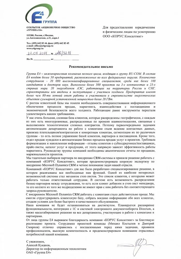 Внедрение Microsoft Dynamics CRM в инжиниринговой компании «Группа E4»