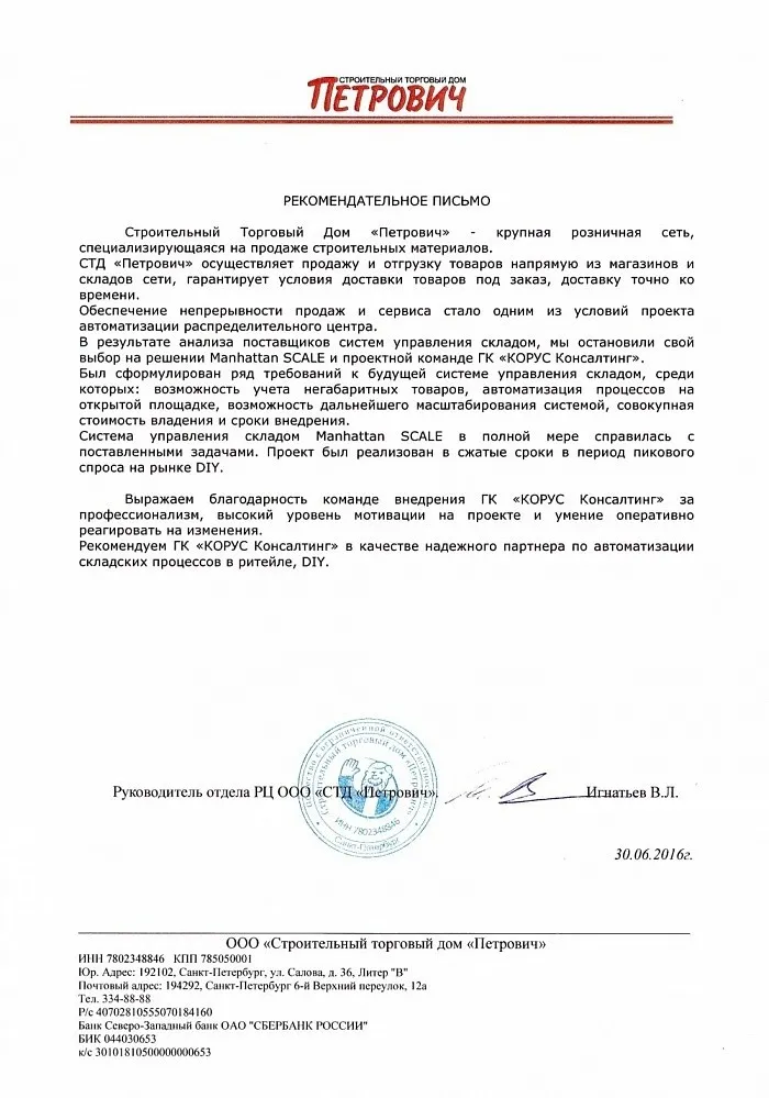 Внедрили систему управления складской логистикой на базе WMS Manhattan SCALE