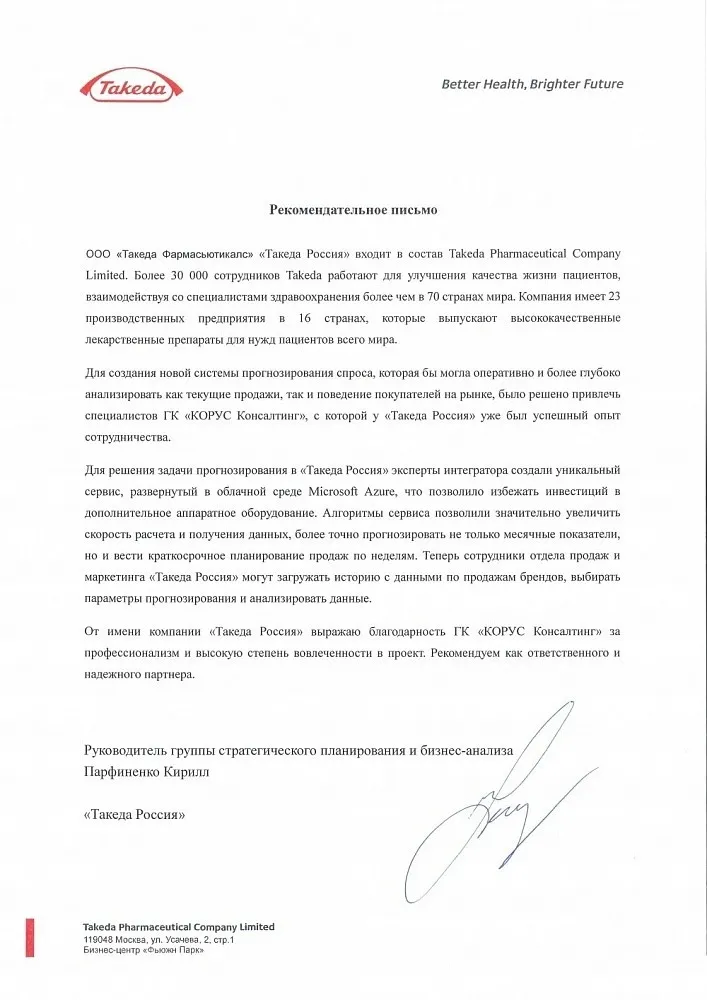 «Такеда» – японская фармацевтическая компания, основанная в Японии в 1781. Присутствует почти в 80 странах и предоставляет инновационные препараты и революционные методы лечения. Подразделение «Такеда Россия» (ранее «Никомед») — одна из самых динамичных и быстрорастущих фармкомпаний, входящих в топ-10 на фармацевтическом рынке РФ.