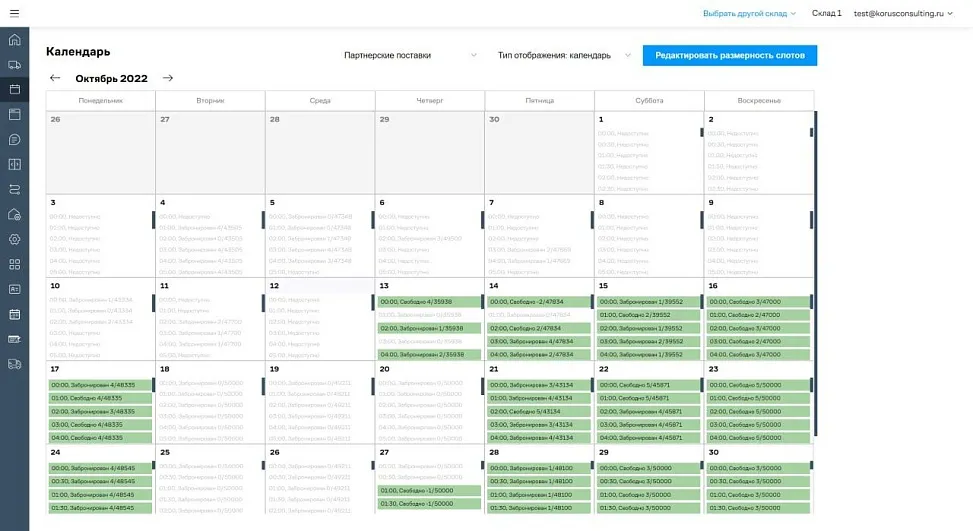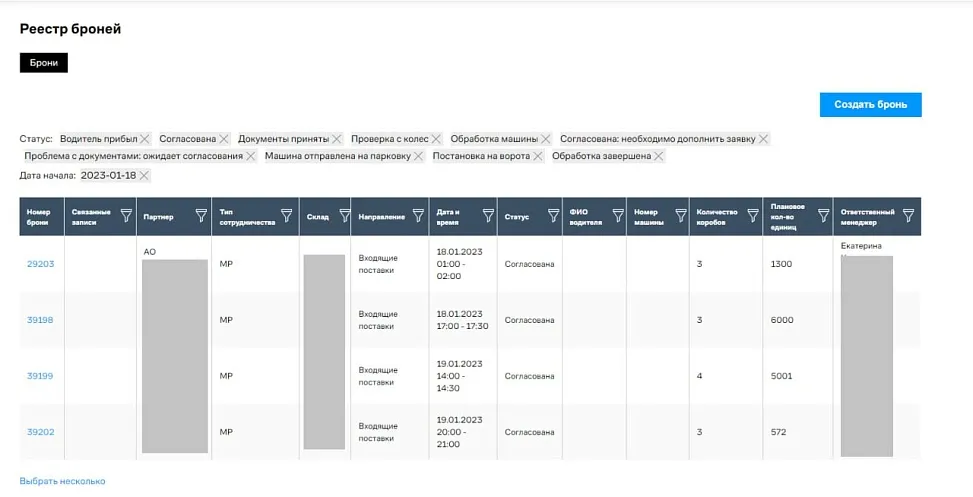 - Заявки от 1700+ партнёров на бронирование более 200 временных слотов на двух складах поступали вразнобой. Это были письма, звонки, сообщения в мессенджерах. Менеджеры вручную сводили данные в десятках Excel-файлов и дублировали их в программе, фиксирующей бронь.