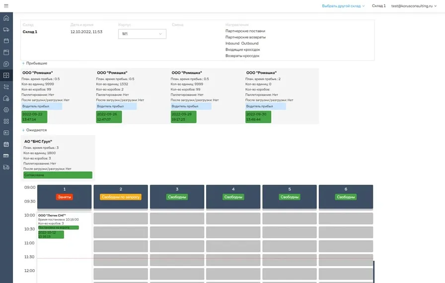 - Нестандартная единая архитектура на стыке двух систем: e-commerce-портала и Yard Management System (область WMS). Благодаря этому процесс приёмки и отгрузки стал на 100 % прозрачным — от заявки партнёра до фактической разгрузки машины.
