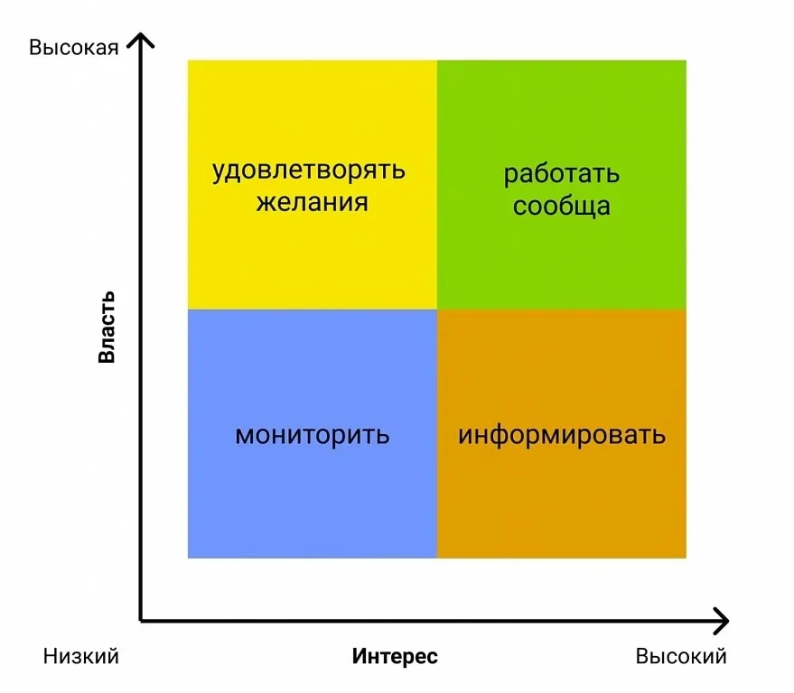 Матрица заинтересованности, или матрица интереса и власти — инструмент, который помогает оценить степень заинтересованности стейкхолдеров и их влияния на проект, а также позволяет выстроить приоритеты в действиях по отношению к этому кругу людей.