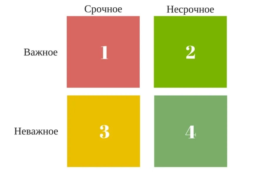 Матрица Эйзенхауэра — система, которая помогает расставить приоритеты с учётом двух параметров задач: их важности и срочности.